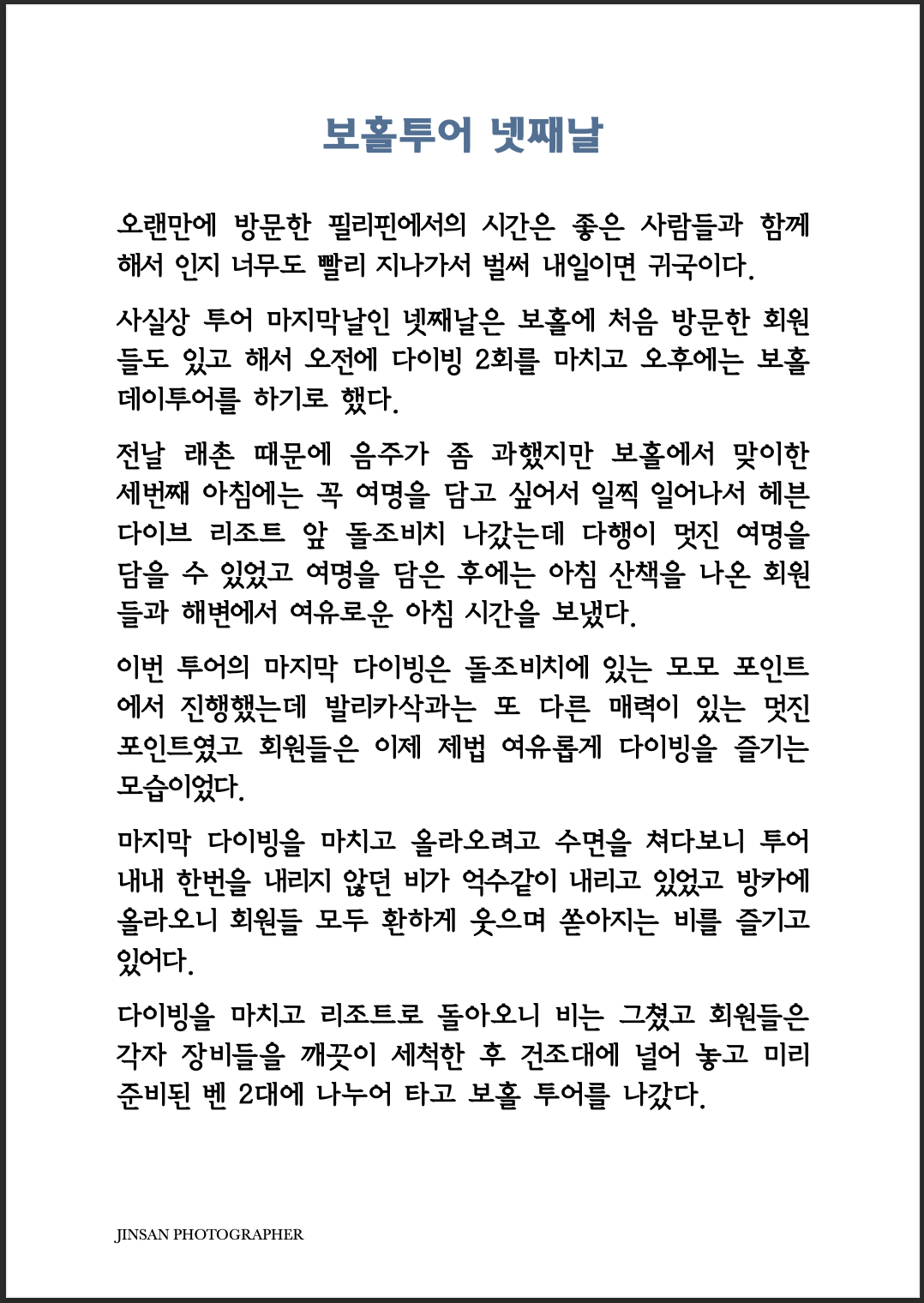 | 2022 Bohol Tour - Epiloque (0) | 2023.01.06 |